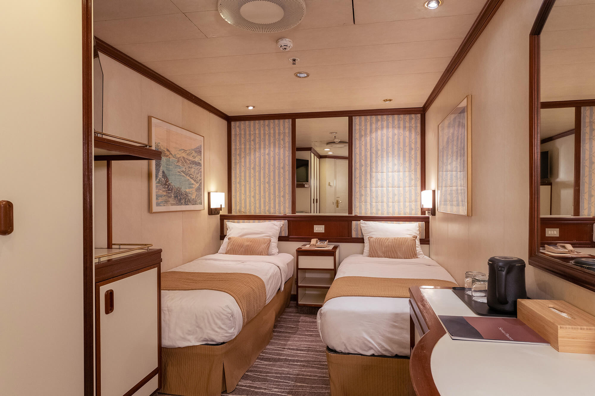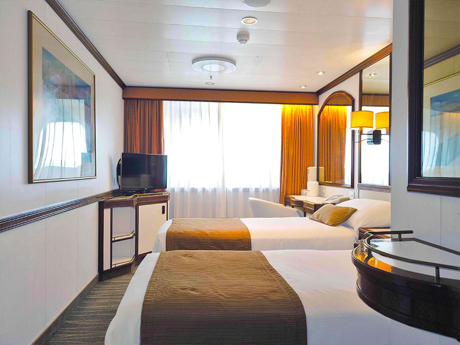 여유로운 선내 공간과 여행을 위한 다양한 시설을 갖춘 본 객선은 승객분 한분 한분에 대해 안전하고, 안심하고 즐길수 있는 세계일주 크루즈 환경을 제공합니다