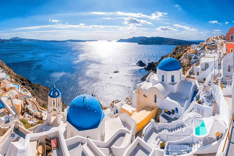 절벽에 들어선 새하얀 벽과 푸른 지붕의 집들, 그리고 푸른 에게해가 동화같은 풍경을 만들어내는 산토리니 섬. 연중 온화한 기온과 아름다운 풍경은 세계일주 크루즈 중에서도 수위를 다투는 인기 기항지 입니다.