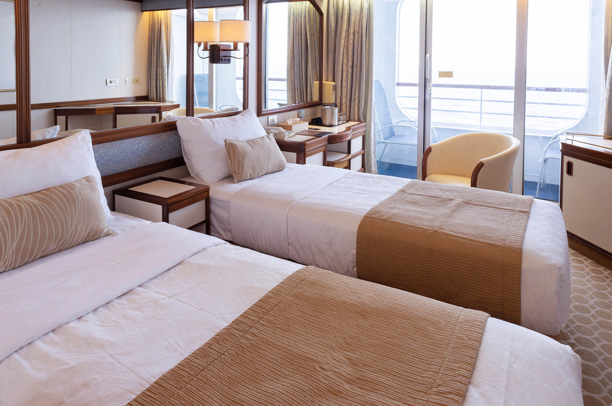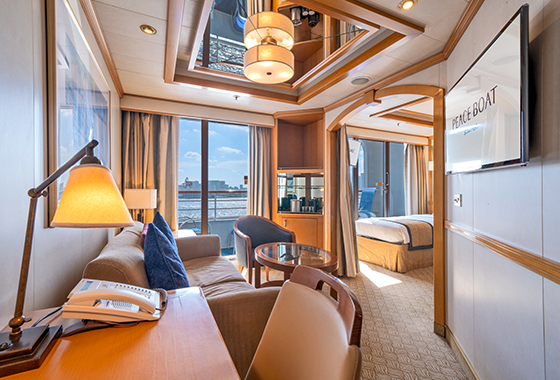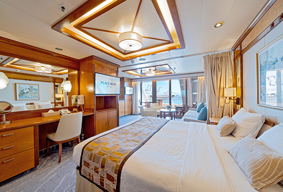 여유로운 선내 공간과 여행을 위한 다양한 시설을 갖춘 본 객선은 승객분 한분 한분에 대해 안전하고, 안심하고 즐길수 있는 세계일주 크루즈 환경을 제공합니다
